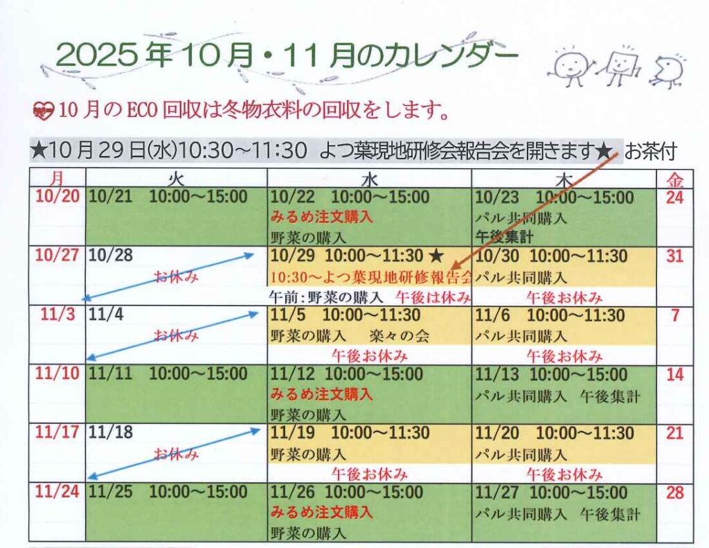 よつ葉乳業の北海道現地研修会が10月17日(金)・18日(土)と開催されました。 プラムフィールド(‟ぐるーぷ・みるめ”)からは井上容子さんと榛葉真理子さんが参加してくださいました。その報告会を行います。■北海道現地研修会報告:10月29日(水)10:30~11:30 参加費無料・小さなお菓子付き お時間を作って参加ください。2025年10月23日記