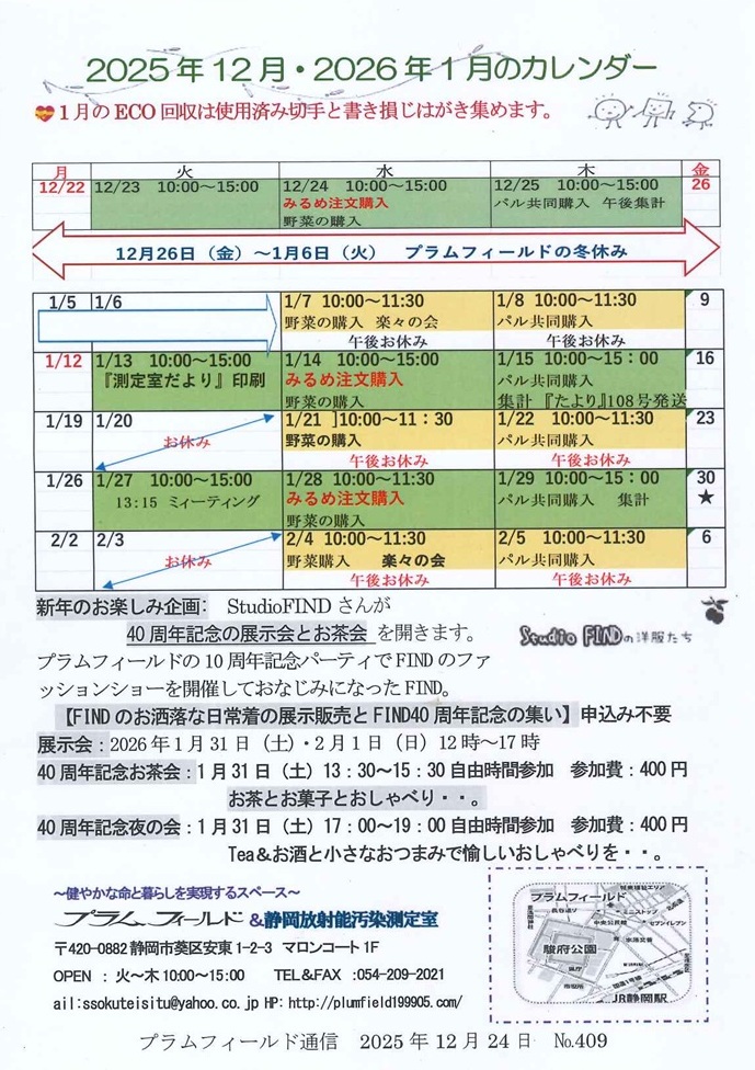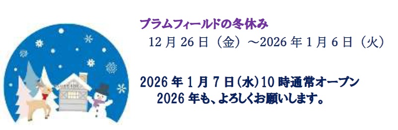 🍀今年1年も、皆さんの協力をいただいて、無事、プラムフィールドの活動を終えることができました。 ありがとうございました。 2026年も引き続き、愉しく、笑顔を繋いで皆さんと歩みたいと思います。 佳いお年をお迎えください。