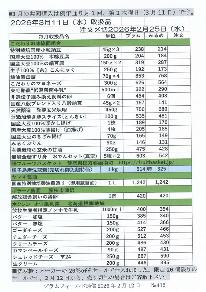 ♥“おーぷん・みるめ”はどなたでも注文購入をしていただける共同購入です。