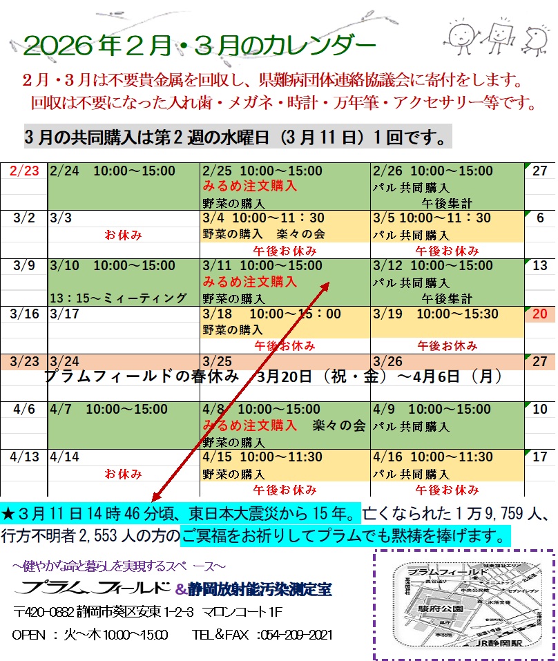 2026年3月11日(水)は、東日本大震災から15年になります。お亡くなりになられた方、 また、福島原発事故で大きな被害を受けられ、今も避難生活や闘病で苦しんでいらっしゃる方に心から哀悼の気持ちと、お見舞いを申し上げます。私たちは、福島原発事故を決して忘れません・・。2026年2月27日記#東日本大震災から15年#福島原発事故